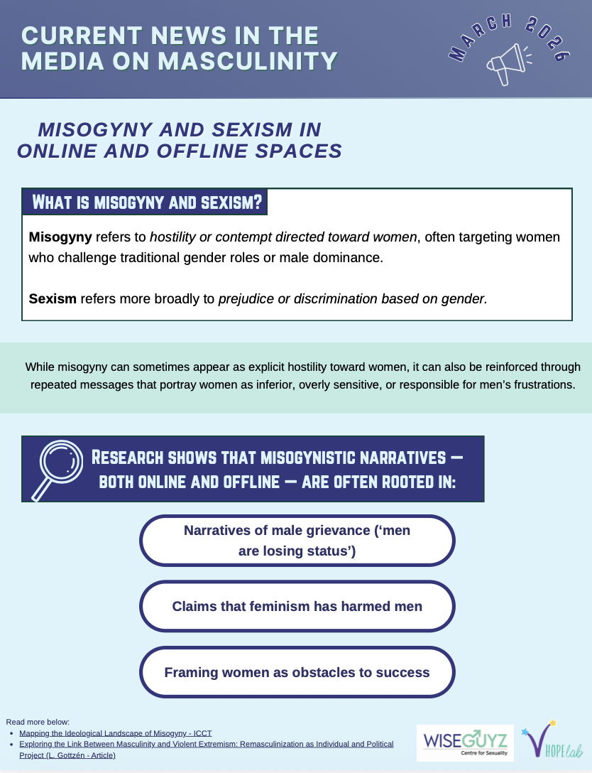 These communities typically blame feminism as a cause of men’s challenges, positioning men as victims of social change. Much of the content that is spread in these spaces reinforces sexist attitudes, rigid gender roles, and hostility toward women and LGBTQ+ people.
